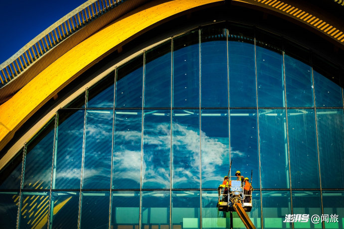 航站樓設(shè)計采用30米跨度的膠合木拱構(gòu)成的波浪形穹頂,呼應(yīng)著麥克坦島周邊的海洋波紋。15米高的透明玻璃幕墻讓空間通透開闊,既減少人工照明依賴,又展現(xiàn)出強(qiáng)烈的生態(tài)美學(xué)意識。