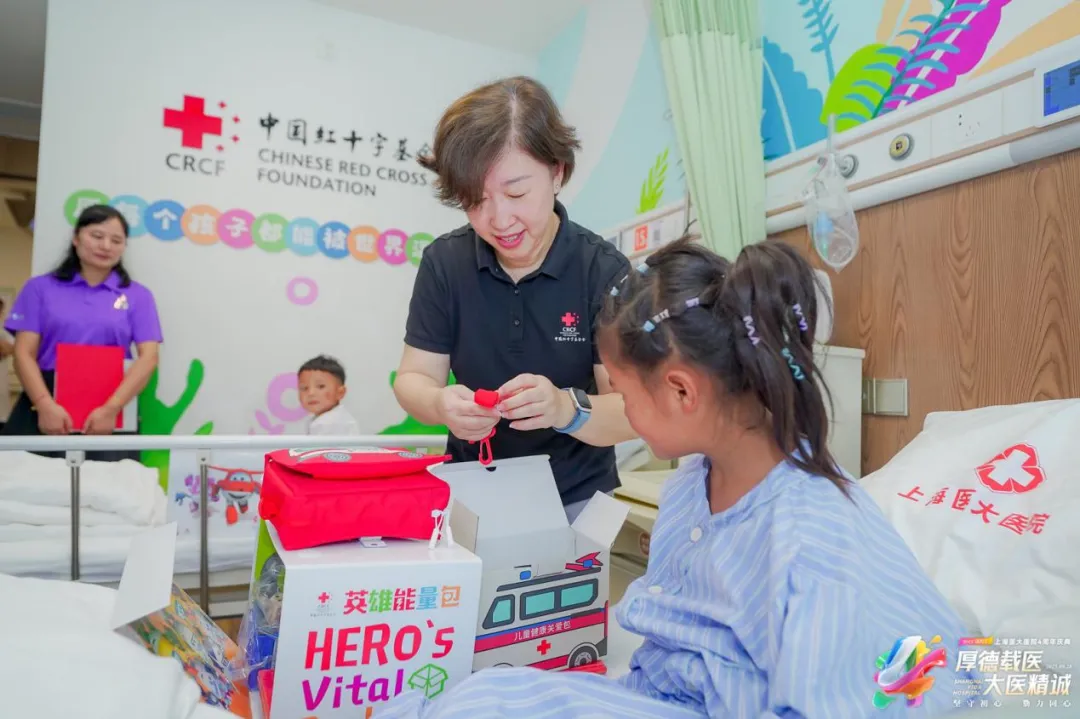 儀式結(jié)束后,嘉賓們走進(jìn)病房慰問患兒,送上精心準(zhǔn)備的“英雄能量包”,提前致以國慶、中秋雙節(jié)祝福。