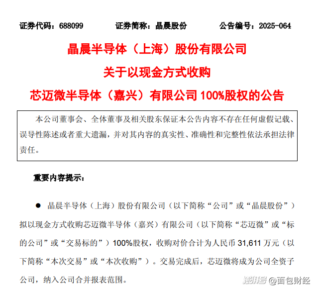 2025年9月15日,晶晨股份公告以3.16億元現(xiàn)金收購芯邁微半導(dǎo)體(嘉興)有限公司100%股權(quán)。