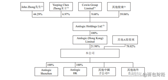 股權(quán)結(jié)構(gòu)方面,截至最后實際可行日期,John Zhong、Yeeping Chen Zhong及陳海濤為一致行動人,通過Amlogic Holdings合計持股約21.98%。