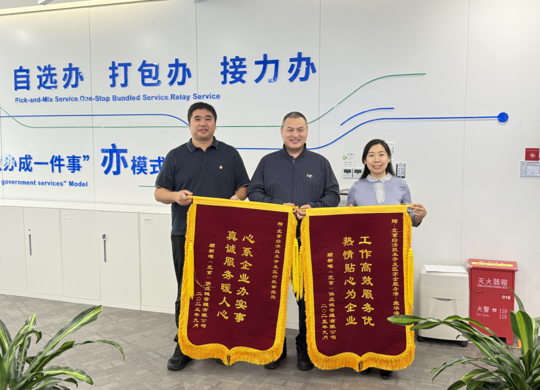 局港聯(lián)動破堵點,“亦莊服務(wù)”助力企業(yè)發(fā)展駛?cè)搿翱燔嚨馈?/h1>2025-10-16 17:45來源:澎湃新聞·澎湃號·政務(wù)字號“太感謝大家的幫助了,要不是你們及時出手,我們的損失可就大了!”近日,順新暉(北京)供應(yīng)鏈管理有限公司(以下簡稱“順新暉”)有關(guān)負(fù)責(zé)人李仲謙將兩面錦旗送到北京經(jīng)開區(qū)行政審批局和亦企服務(wù)港榮華港,對他們在企業(yè)運營遭遇堵點時給予的高效支持和貼心服務(wù)表示衷心感謝。