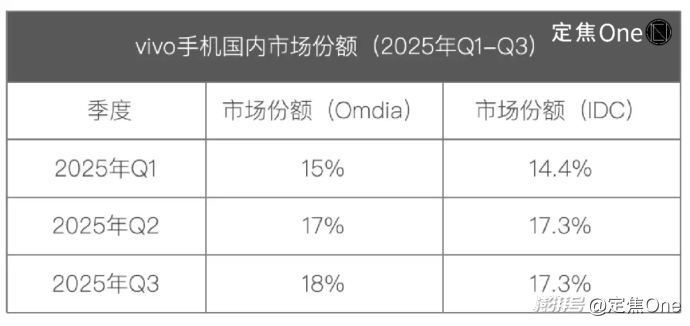 這次輪到vivo。根據(jù)Omdia和IDC的數(shù)據(jù),vivo以18%左右的市場份額重返榜首。華為與蘋果則在15-16%的區(qū)間內(nèi)爭奪第二、三名。