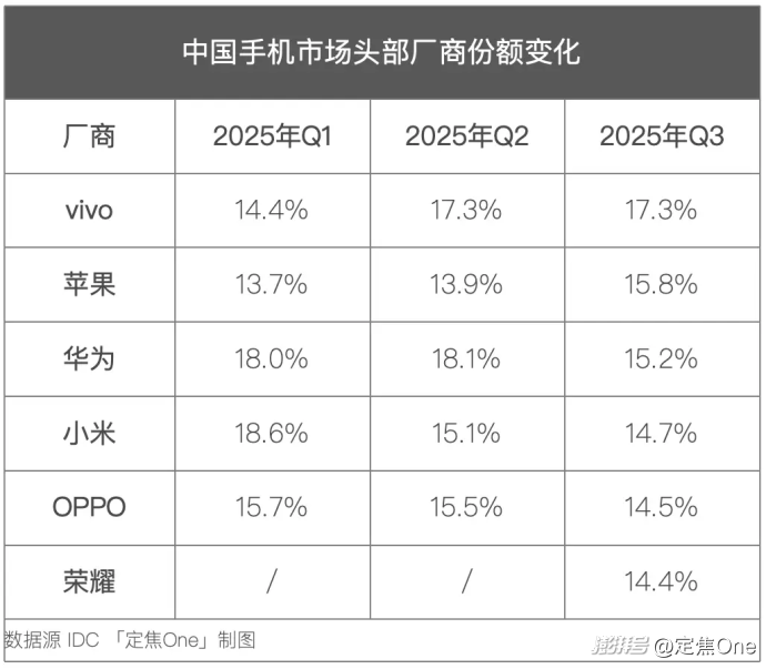 2025年,小米、華為、vivo輪流登頂,穩(wěn)定被打破。
