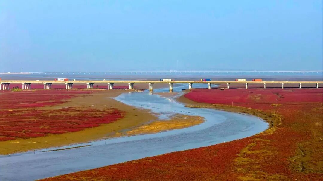 月光灑滿紅海灘,堿蓬草在夜色中若隱若現(xiàn),遠(yuǎn)處的膠州灣大橋亮起燈火,與天上的明月交相輝映。這片由植物、鳥類、潮水共同造就的奇觀,不僅是視覺的盛宴,更是生態(tài)保護(hù)的見證。