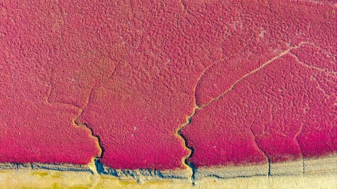 每年4月,嫩紅的幼苗從鹽堿鹵漬中探出頭,歷經(jīng)春夏的沉淀,到9月終于綻放出最妖艷的紅色,再過些時(shí)日甚至?xí)旧献蠒?,直?0月底仍能保持絢爛姿態(tài)。