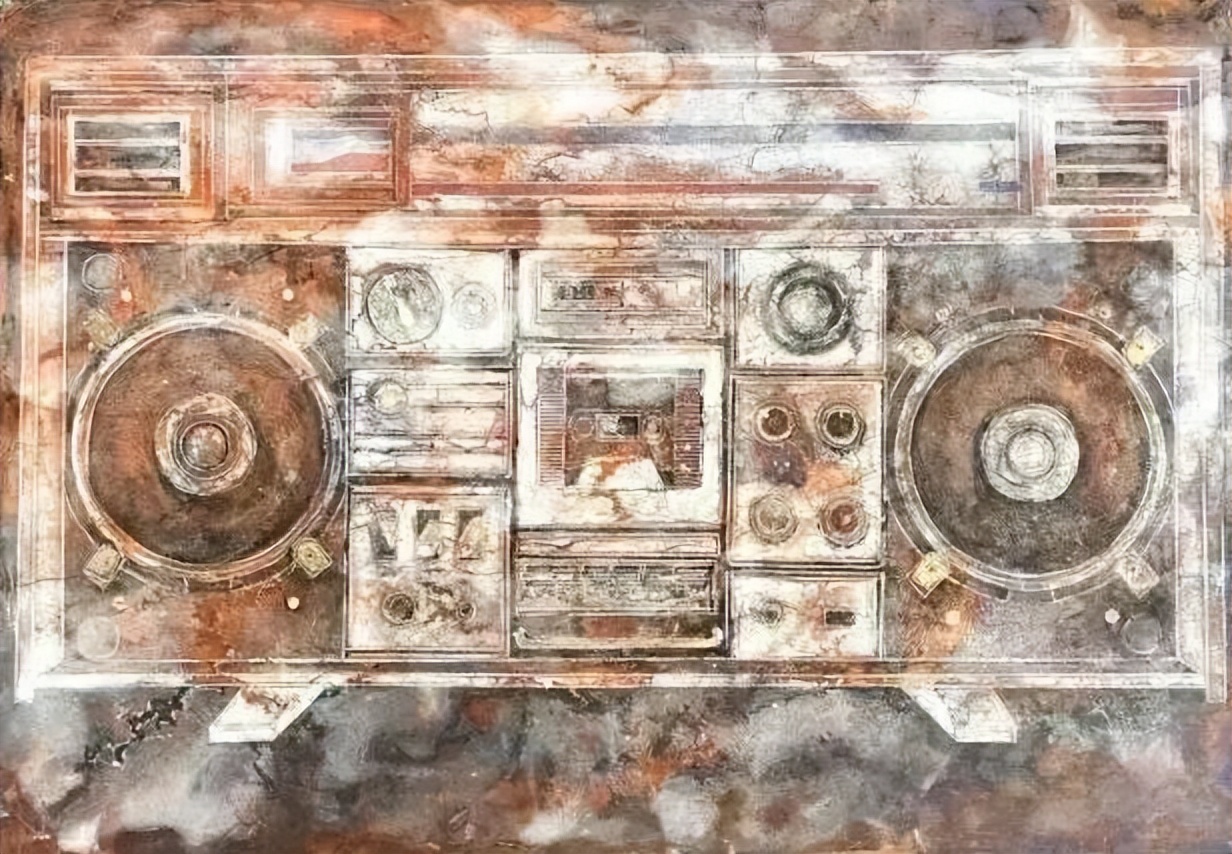▲展出作品:盧曉瑩《聽(tīng)筒里的?!?/p>
