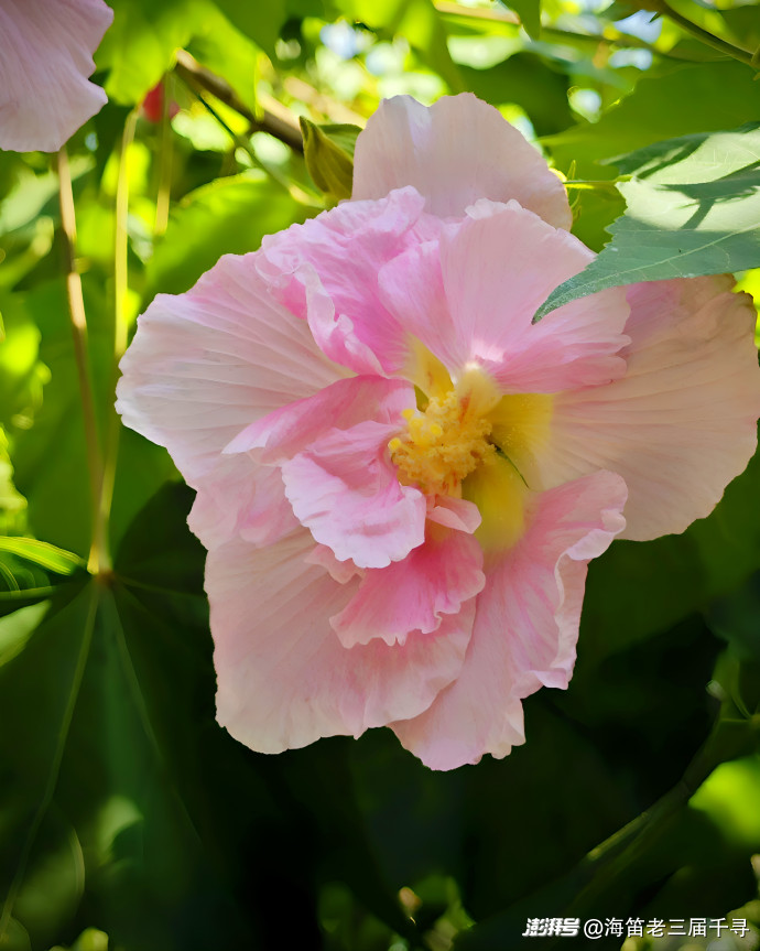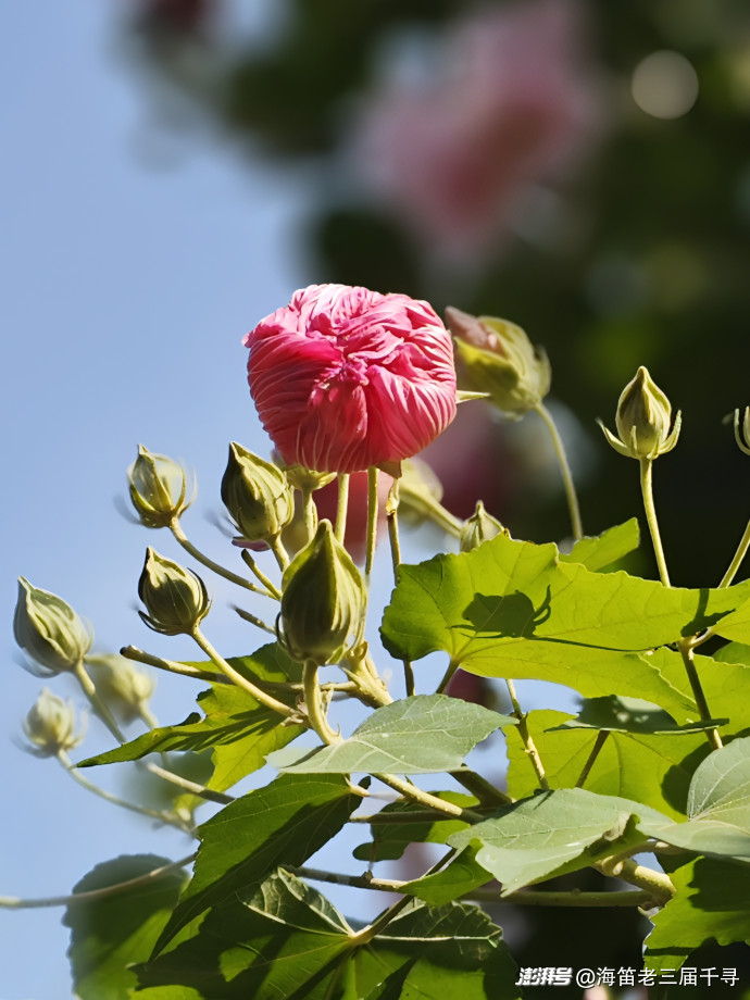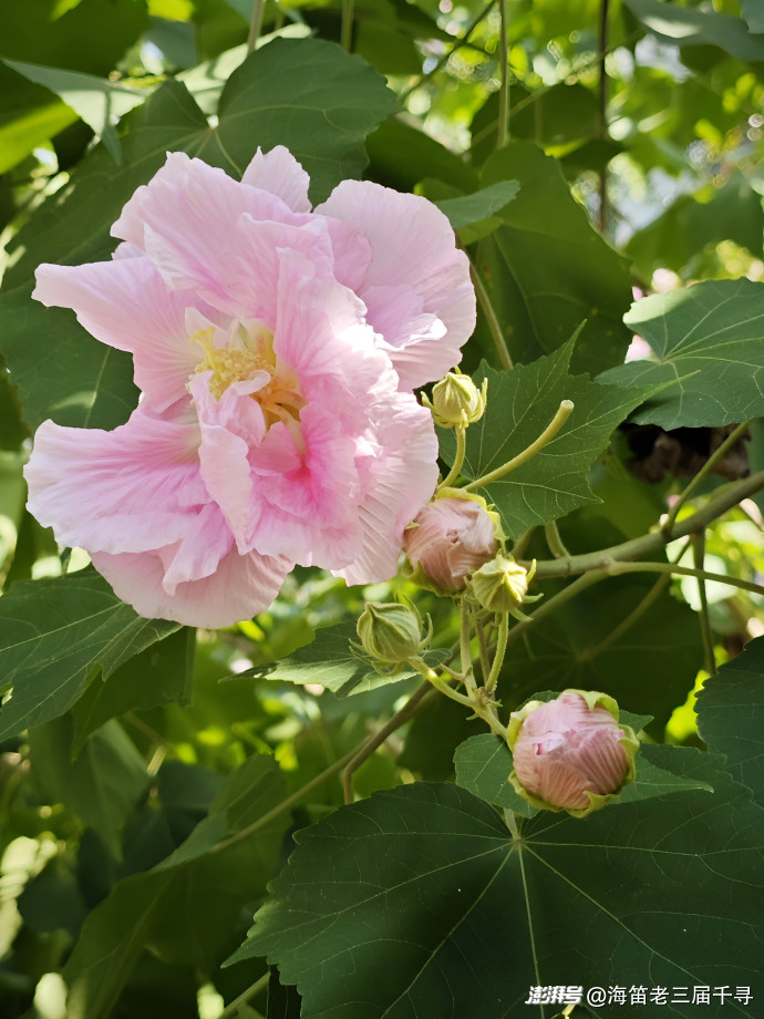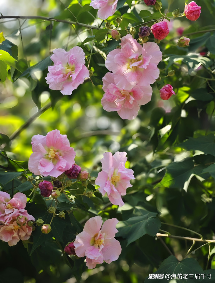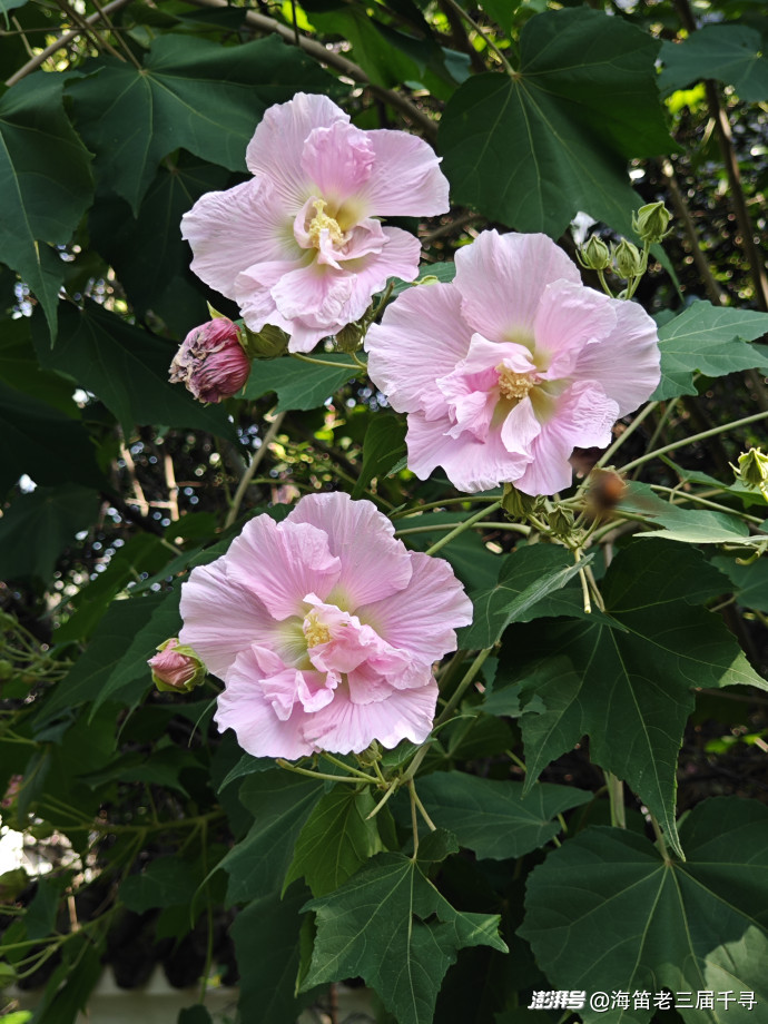 近日在成都百花潭公園吃茶,茶鋪邊有幾株芙蓉花開(kāi)了,真美。