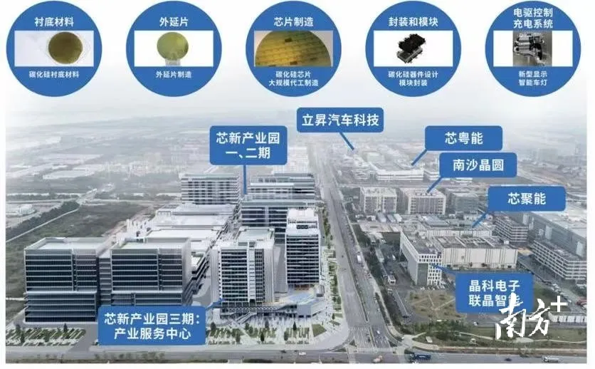 廣東“強(qiáng)芯工程”重大項(xiàng)目芯粵能落地于此,是目前國內(nèi)最大的專注于車規(guī)級碳化硅芯片研發(fā)和制造的企業(yè)之一。