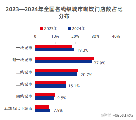 據(jù)紅餐大數(shù)據(jù)顯示,與2023年相比,2024年咖飲門店在三線及以下城市的占比提高了0.6個百分點。瑞幸咖啡、星巴克、幸運咖、庫迪咖啡、NOWWA挪瓦咖啡等品牌均有下沉擴張的舉措,例如庫迪咖啡發(fā)起的“百城千店”促銷活動已覆蓋了上百個地縣級城市,NOWWA挪瓦咖啡通過“早鳥計劃”補貼下沉市場的咖飲創(chuàng)業(yè)者。