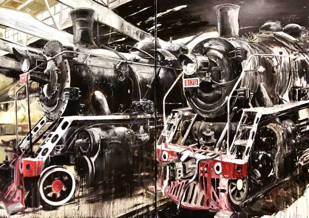 孫一墨《工業(yè)轟鳴時代變遷的鋼鐵脊梁》360cmX240cm
