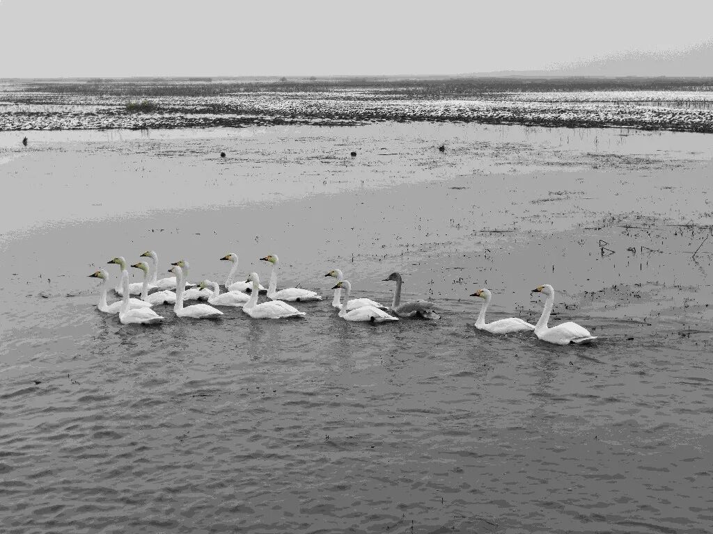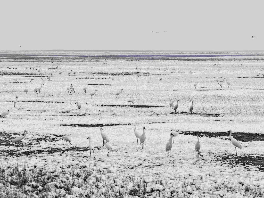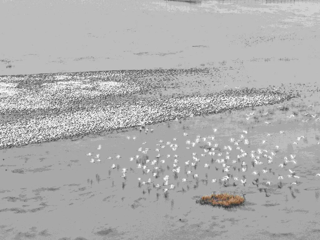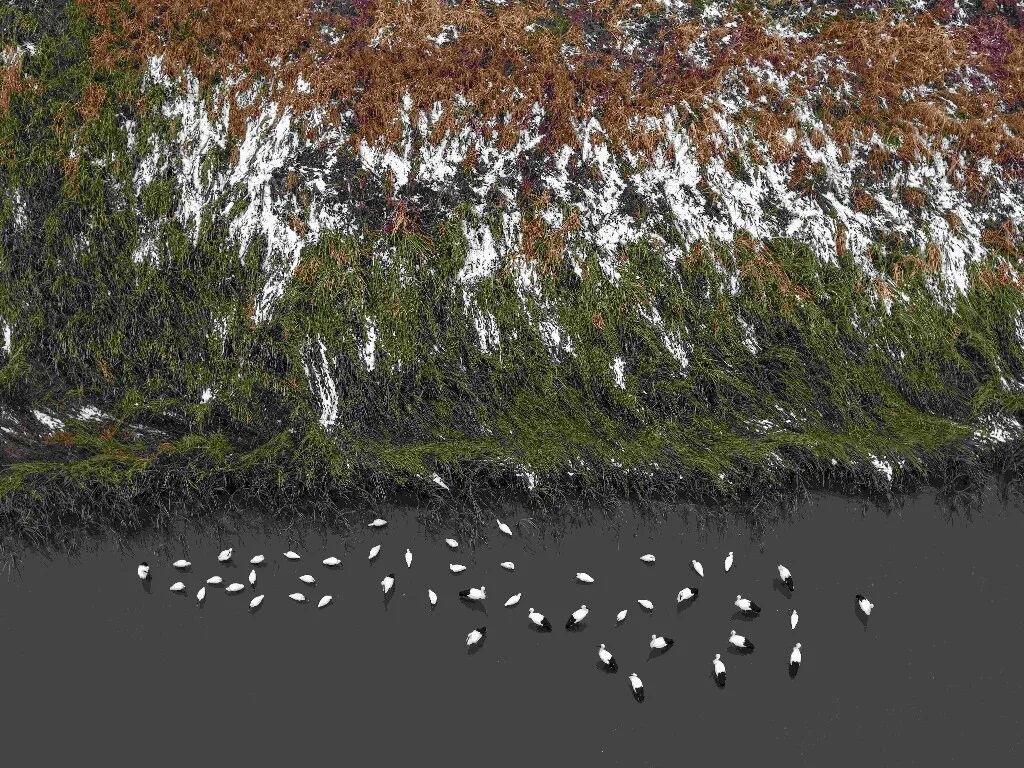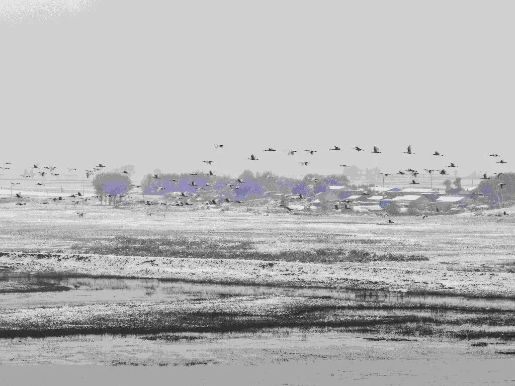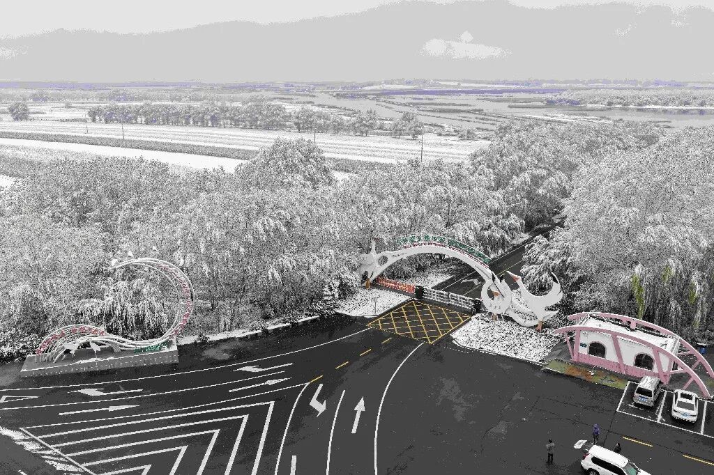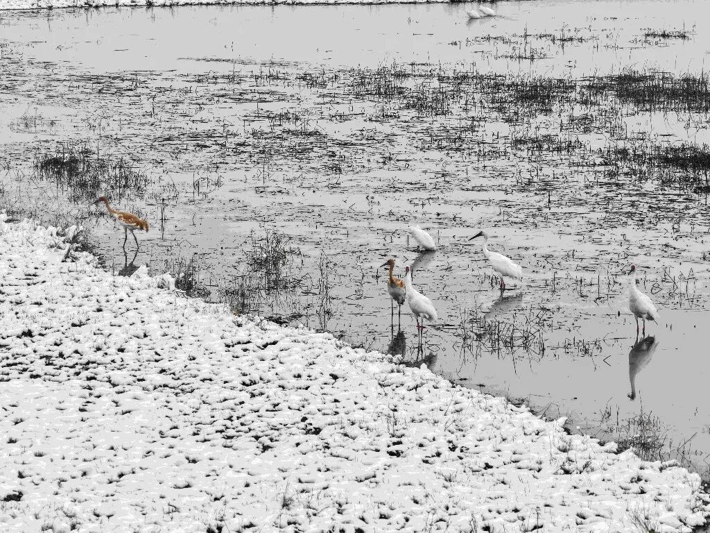 降雪后,濕地內(nèi)候鳥(niǎo)活動(dòng)呈現(xiàn)差異化特點(diǎn):白鶴、東方白鸛、小天鵝、白琵鷺等國(guó)家重點(diǎn)保護(hù)珍禽活動(dòng)范圍較往日略有縮小,但仍在銀色濕地中活躍,或低頭于雪層下覓食,或靜臥積雪蘆葦叢休息,偶有群體振翅,潔白羽翼與雪地相映成趣;而野鴨、大雁則似乎不受降雪限制,飛行、覓食、休息的場(chǎng)景在濕地里隨處可見(jiàn),為靜謐的冰雪世界增添了更多生機(jī)。