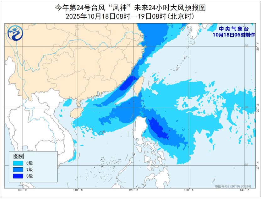 中央氣象臺(tái)10月18日06時(shí)發(fā)布臺(tái)風(fēng)預(yù)報(bào):菲律賓以東洋面熱帶低壓已于18日凌晨加強(qiáng)為今年第24號(hào)臺(tái)風(fēng)“風(fēng)神”(熱帶風(fēng)暴級(jí)),早晨5點(diǎn)鐘其中心位于菲律賓馬尼拉東偏南方約640公里的洋面上,就是北緯12.9度、東經(jīng)126.6度,中心附近最大風(fēng)力有8級(jí)(18米/秒),中心最低氣壓為998百帕,七級(jí)風(fēng)圈半徑150-180公里。