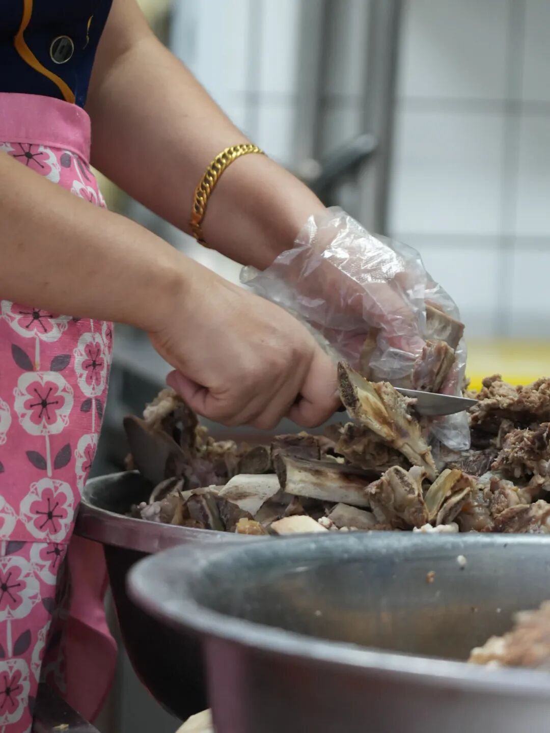 這家店開了 10 年,早上現(xiàn)熬羊骨湯,每天 300 份左右的出單量,卻一直堅(jiān)持食材新鮮,粉塊兒自打。