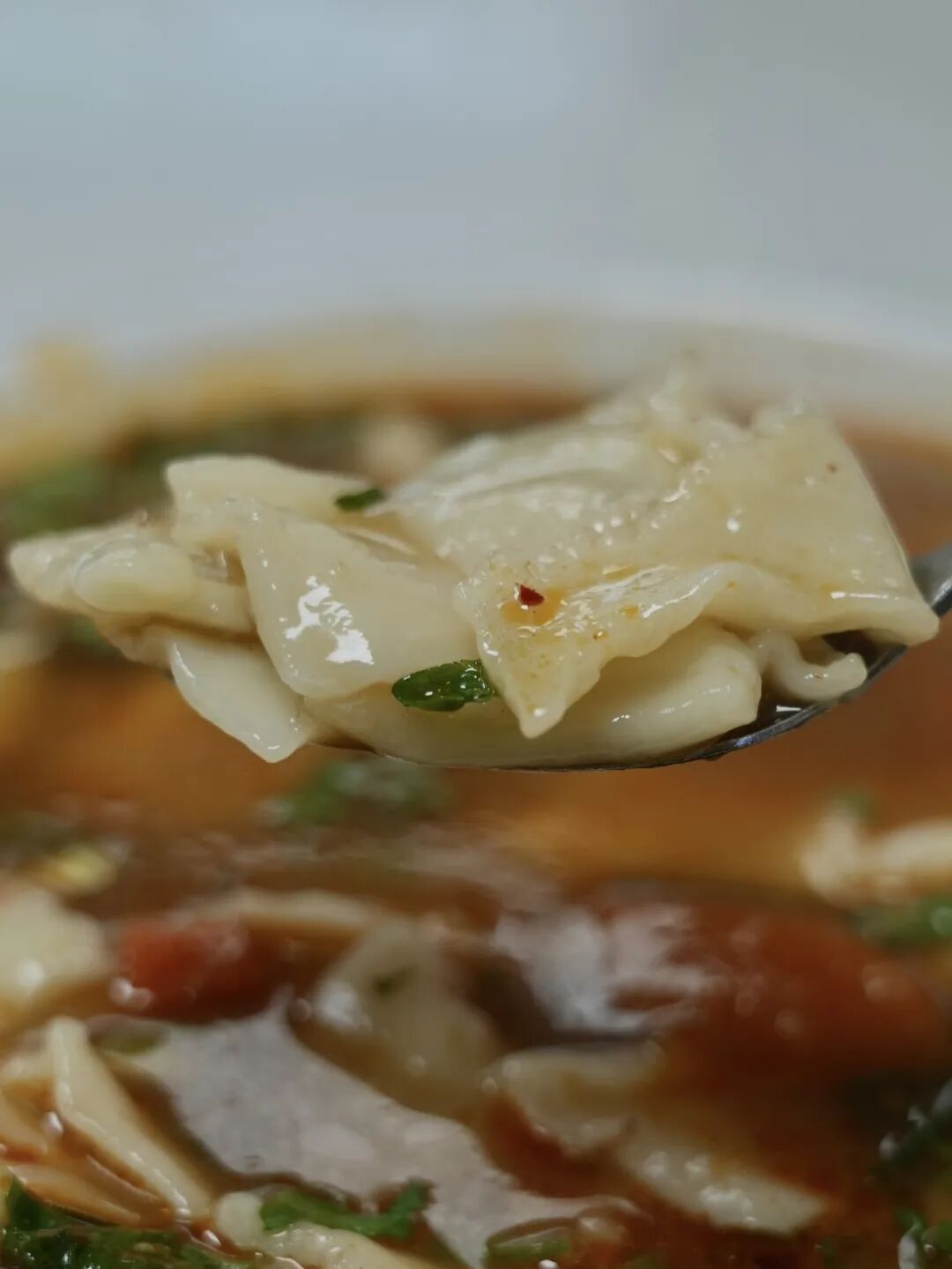 在這家開了 7 年的店,疙瘩湯是“粒粒分明派”。酸湯打底,喝起來(lái)爽滑不黏膩,適合喜歡清爽口感的朋友。