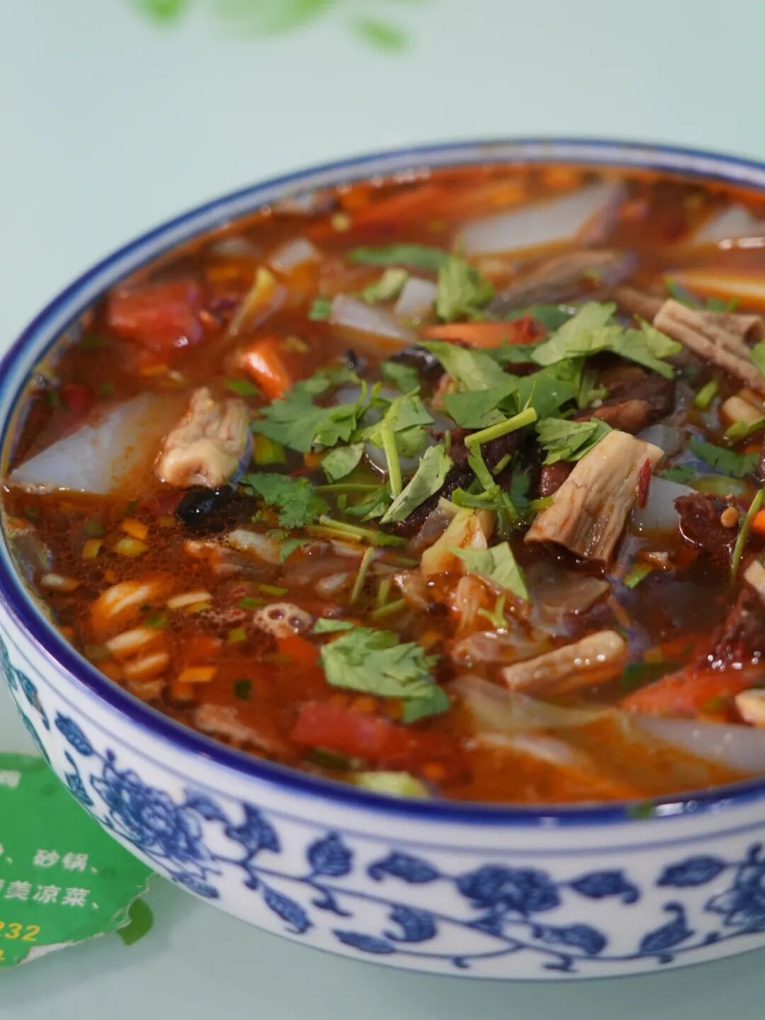 一碗豐富熱鬧的胡辣湯,小小一碗?yún)s包羅萬(wàn)象,不僅要有牛肉、豆腐皮等蛋白質(zhì),還要加木耳、黃花菜等一系列蔬菜。