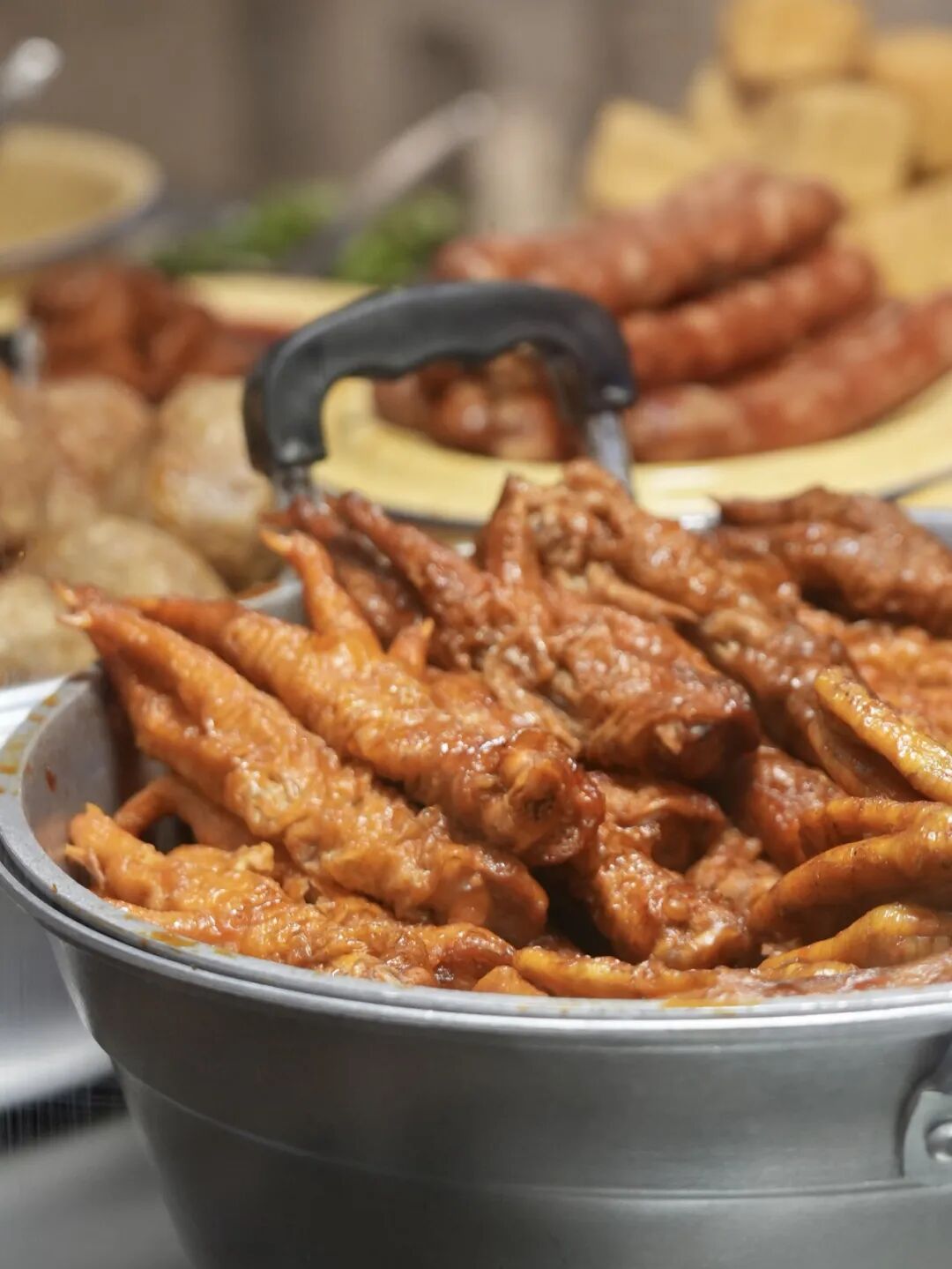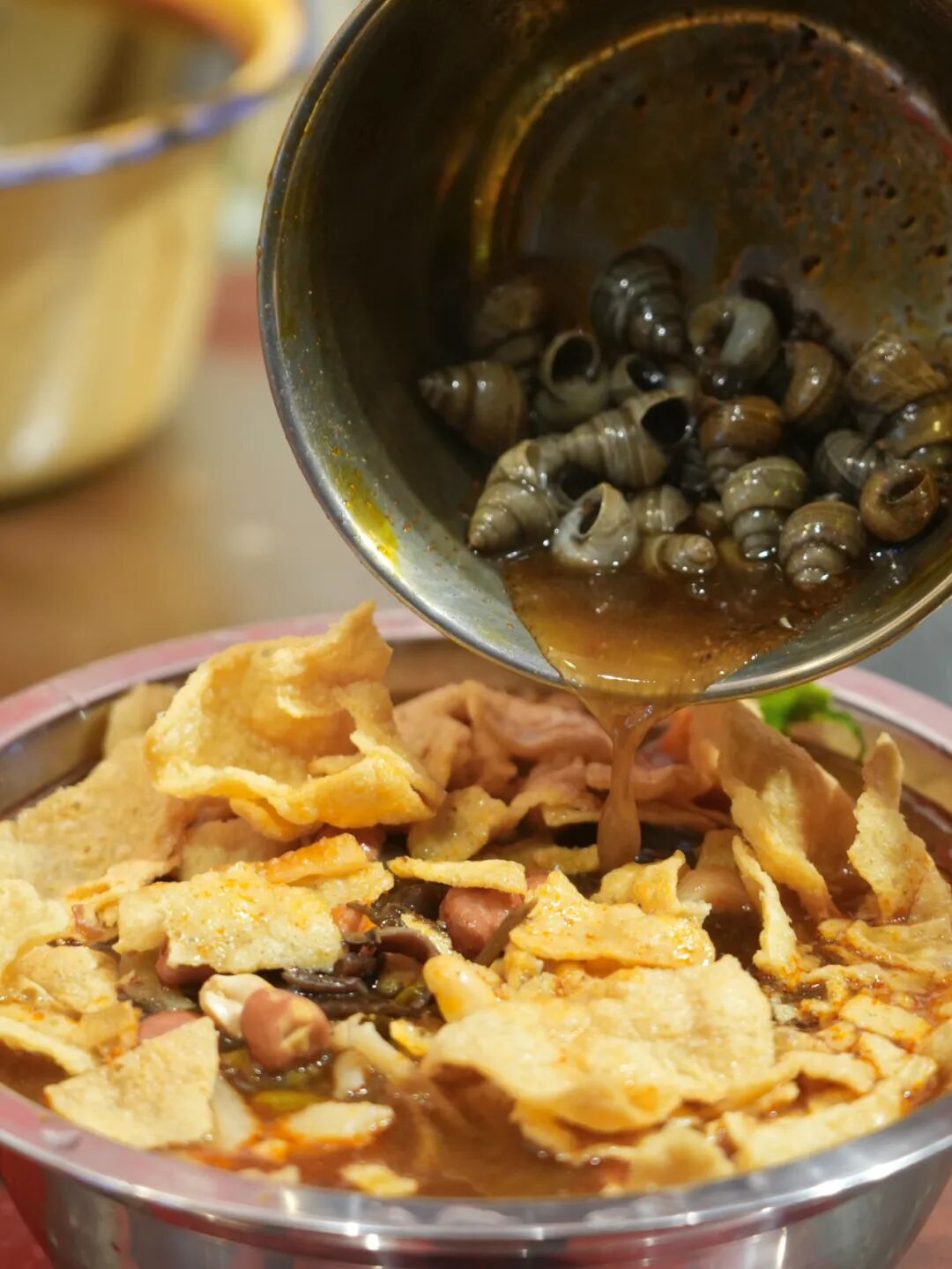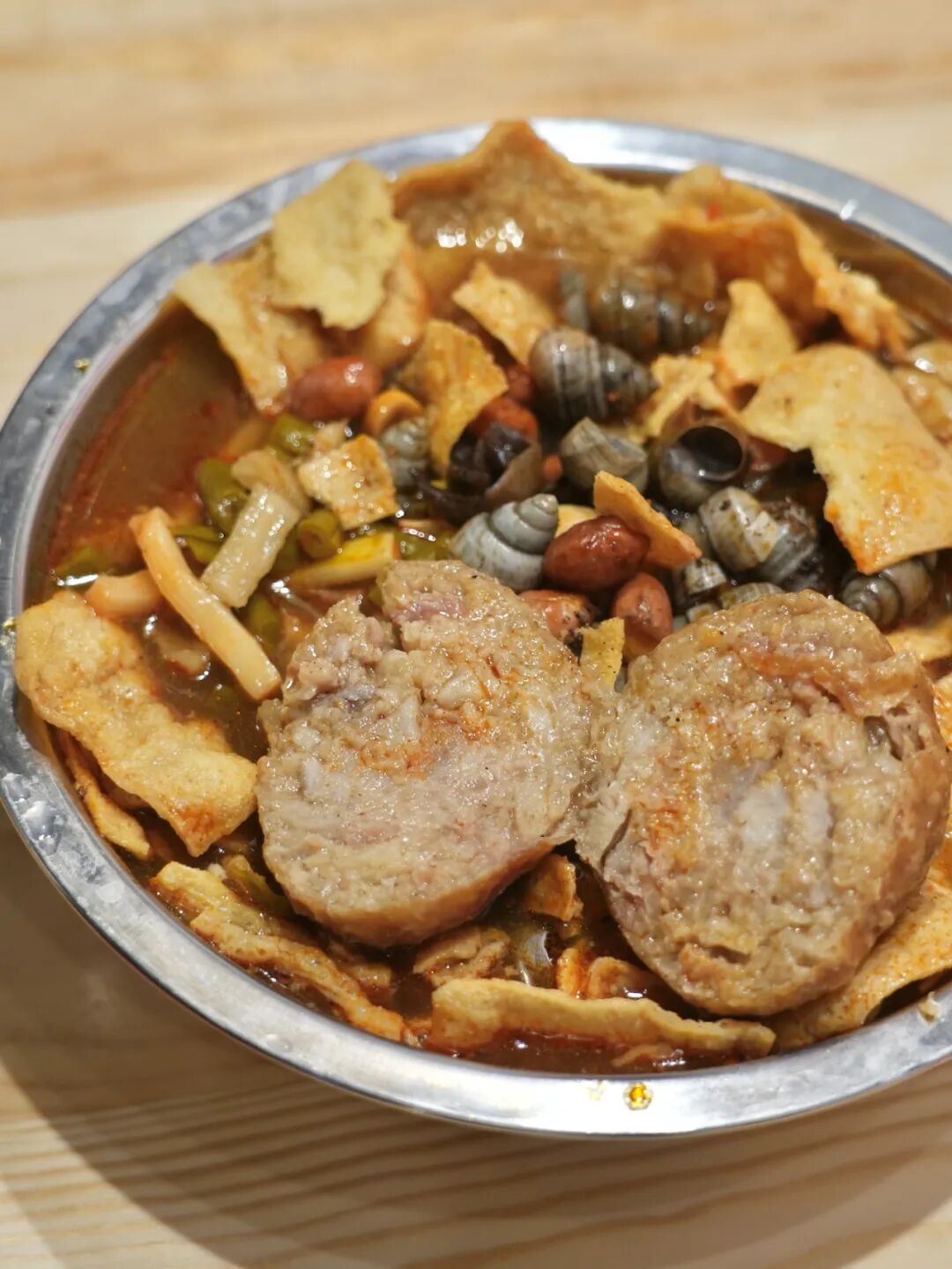 第一次來(lái)讓我有些意外。一是味道不臭,完全沒有印象中螺螄粉那樣濃烈氣味。二是配料豐富,脆皮鍋燒肉、響鈴卷、雞爪、油豆腐……光選配料就看花眼。
