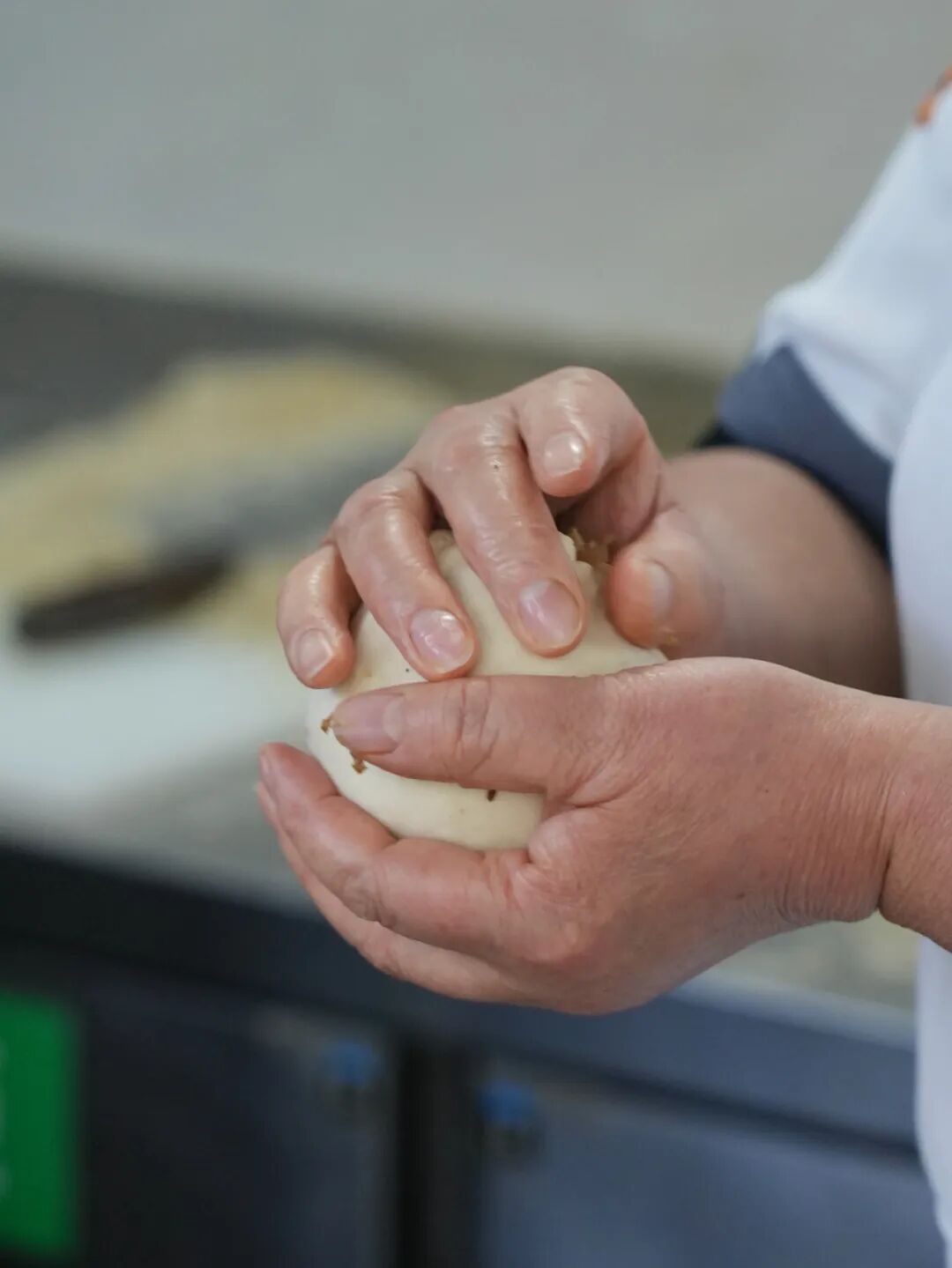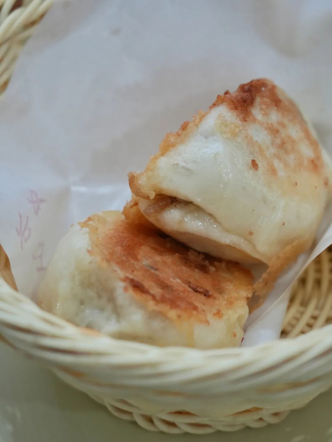 胡辣湯的圓滿,同樣少不了一盤現(xiàn)包現(xiàn)蒸的水煎包。餡料是牛肉配粉條,底面煎得焦黃酥脆,軟乎暄騰,一口包子沾濃湯,扎實(shí)感頂?shù)缴挝纭?/p>
