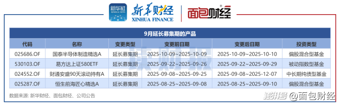 9月共有4只基金宣布延募,涉及恒生前?;稹┗鸬绕煜庐a(chǎn)品。