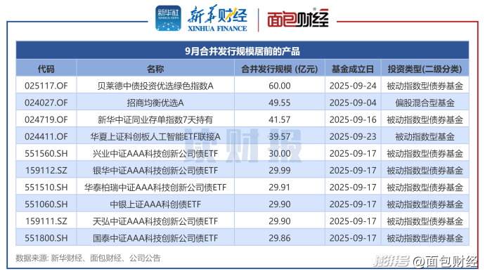 圖2:9月合并發(fā)行規(guī)模居前的產(chǎn)品