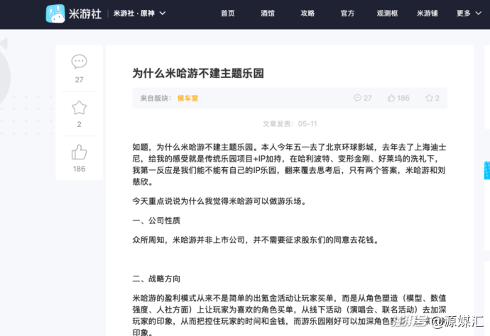 在玩家層面,關于米哈游建主題樂園的討論,自《原神》爆火出圈后,相關的討論就從未停息過。