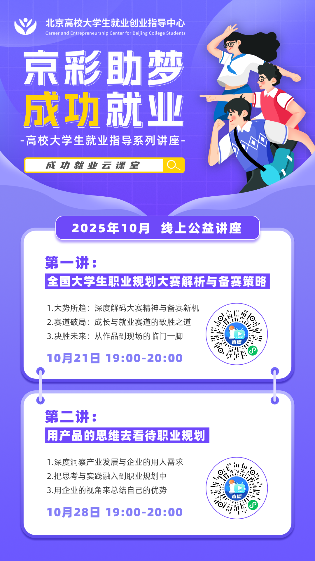 講座預(yù)告│“京彩助夢(mèng) 成功就業(yè)”--本月兩場(chǎng)公益課:大學(xué)生職業(yè)規(guī)劃大賽解析與備賽、職業(yè)規(guī)劃