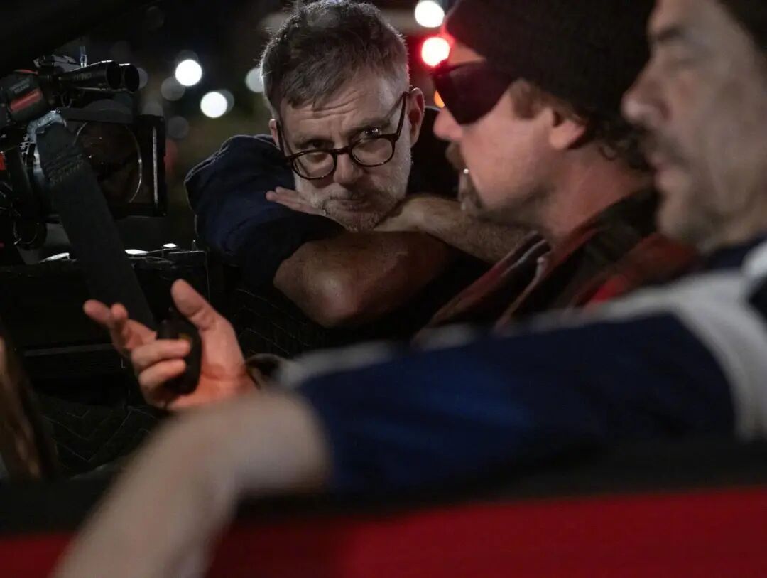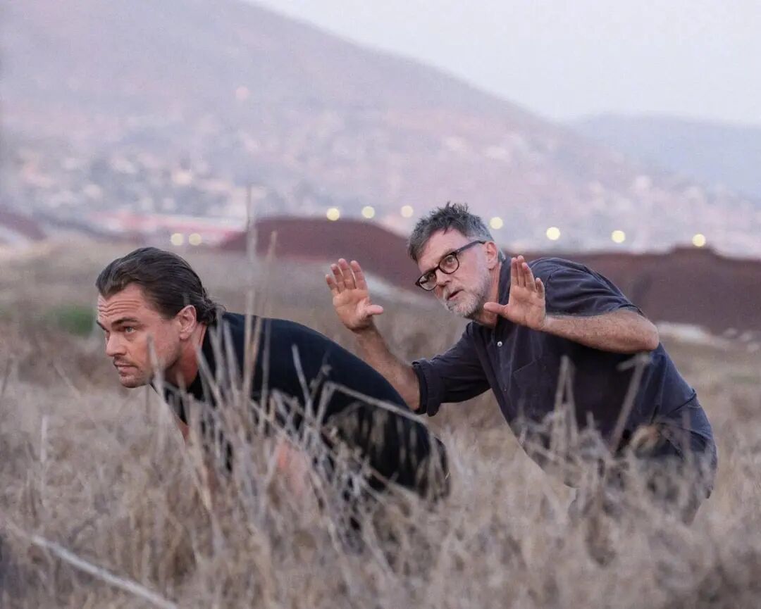 △ 萊昂納多·迪卡普里奧(左)和導(dǎo)演保羅·托馬斯·安德森(右)在拍攝現(xiàn)場