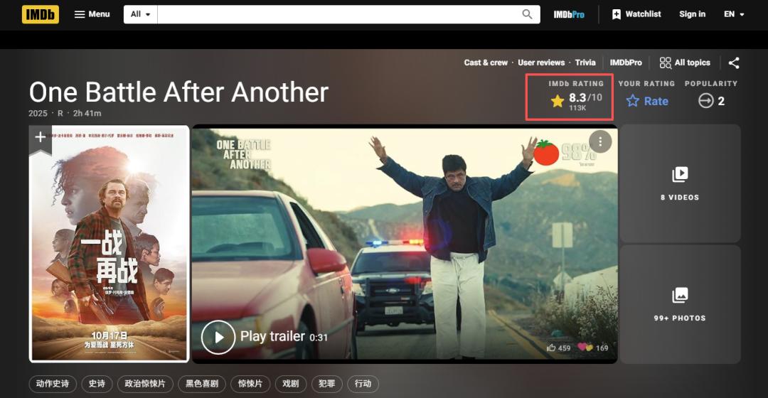 △ 《一戰(zhàn)再戰(zhàn)》IMDb評分8.3