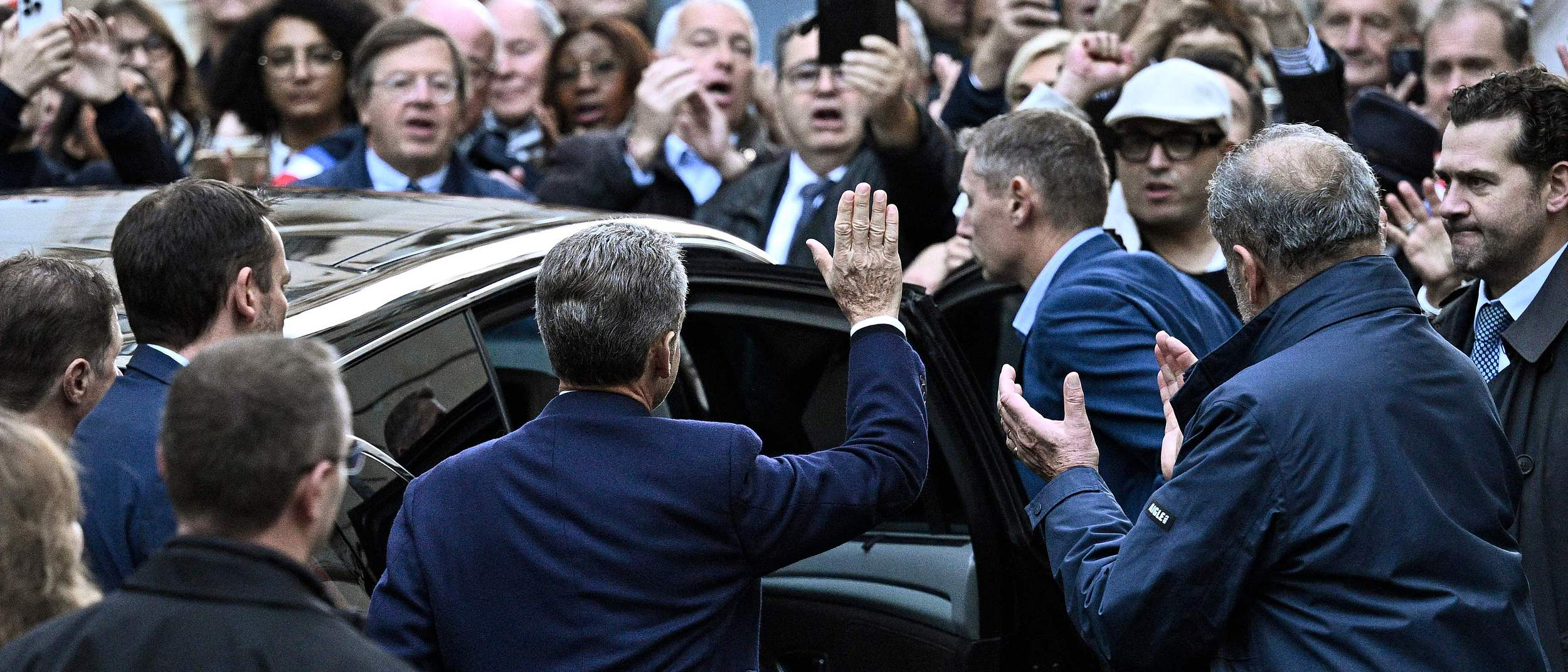 當(dāng)?shù)貢r(shí)間2025年10月21日,法國巴黎,前法國總統(tǒng)尼古拉·薩科齊的兄弟紀(jì)堯姆·薩科齊在尼古拉·薩科齊的住所外鼓掌。