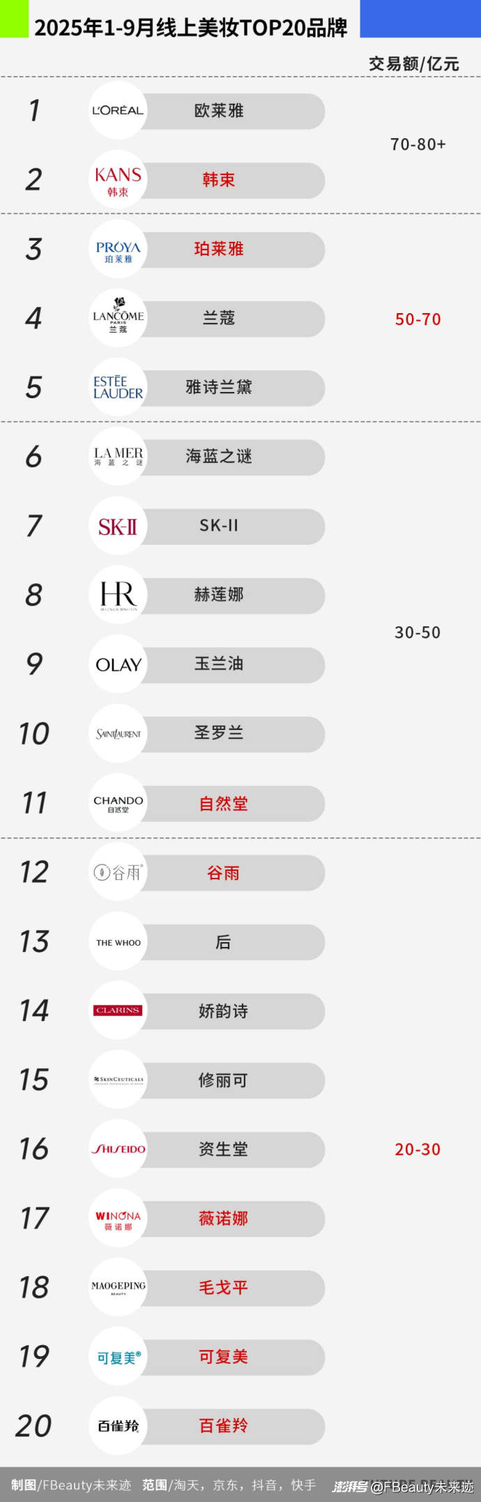 從品牌看,在2025年前9個月,國貨品牌持續(xù)突圍、外資品牌分化加劇。
