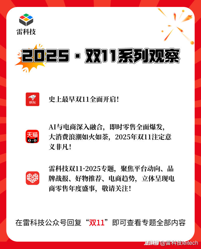 雷科技雙11·2025專題,聚焦平臺動向、品牌戰(zhàn)報、好物推薦、電商趨勢,立體呈現(xiàn)電商零售年度盛事,敬請關(guān)注!