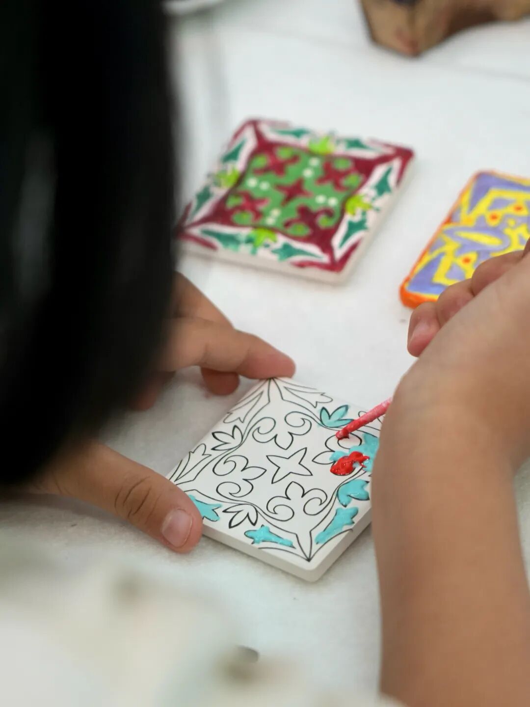 拿“非遺融合區(qū)”來說,糖畫制作、掐絲琺瑯制作、剪紙、模戳印花……少則幾分鐘、多則一小時,都可以免費體驗。