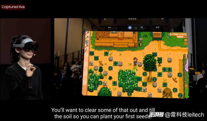 類似的例子還出現(xiàn)在 AI 指導(dǎo)游玩《星露谷物語》的演示中。作為一個(gè)從來沒玩過該游戲的玩家,Jin Park 在現(xiàn)場(chǎng)演示讓 Gemini 指導(dǎo)她上手《星露谷物語》,而底層就是需要讓 AI 能夠?qū)崟r(shí)獲取屏幕、乃至透視的現(xiàn)實(shí)畫面。