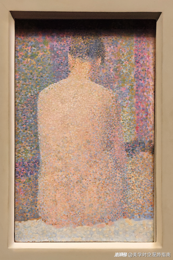 修拉的《模特背影》冷靜、理性,精確而嚴格的點下每一粒色塊。
