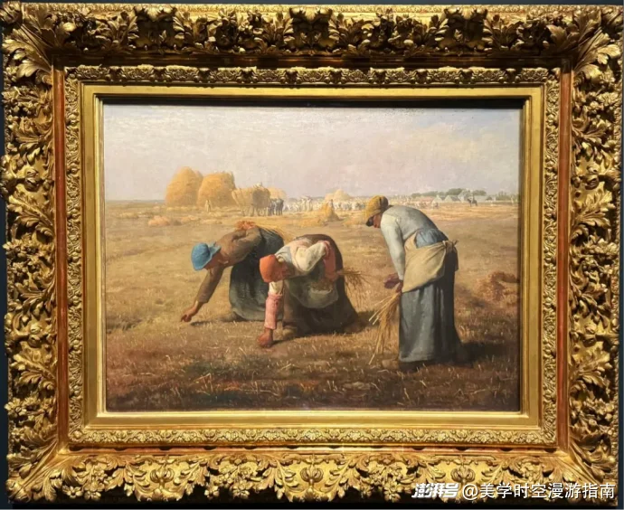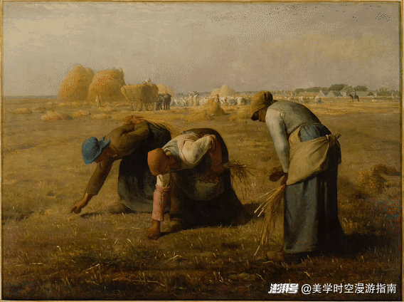 畫面正中是三位彎腰拾麥穗的農(nóng)婦,背后是金黃的田野。不知道三位農(nóng)婦是否致敬了美惠三女神,但這幅畫在當時引起不小的轟動,因為它打破了傳統(tǒng)的藝術(shù)審美。