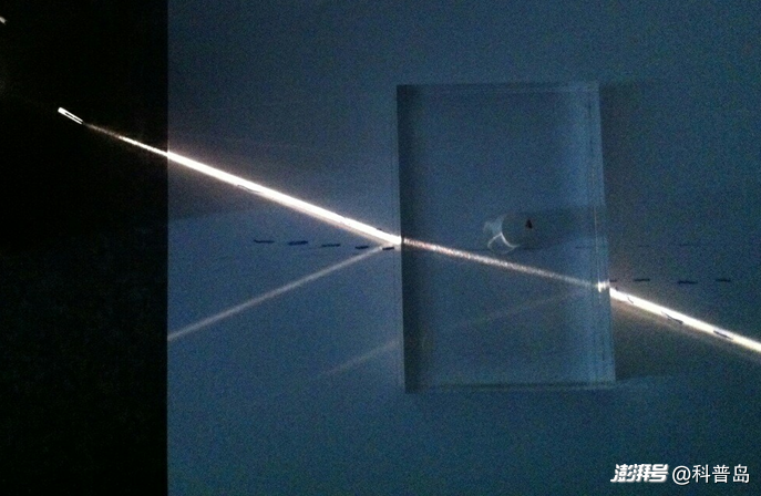 光線射向玻璃,一部分被反射回去,一部分穿過了。 來源:physics.stackexchange.com