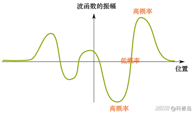簡單描述一個波函數(shù)的形狀與粒子出現(xiàn)概率的關系。注意:概率只和波起伏的幅度有關,但和波是往上還是往下起伏無關。 來源:science4all.org