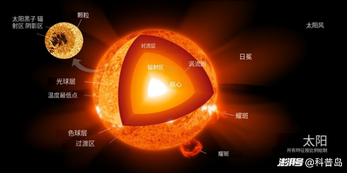 太陽的結構。核心區(qū)域就是發(fā)生核聚變的地方。 來源:維基百科