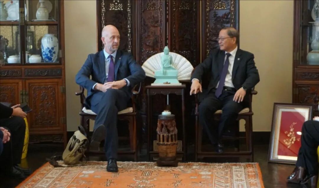 察哈爾學(xué)會秘書長張建國大使與挪威王國駐華大使戴偉恩在會前舉行會見
