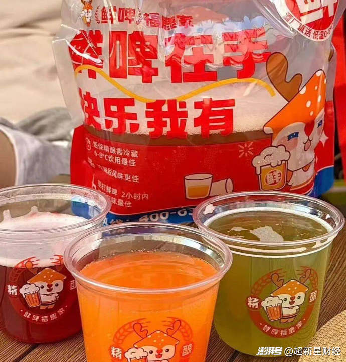 公開資料顯示,福鹿家主打6-10元/500毫升的現(xiàn)打鮮啤,這個價格帶與蜜雪冰城主力茶飲產(chǎn)品3-10元的定價形成無縫銜接。其產(chǎn)品線涵蓋經(jīng)典黃啤、白啤等基礎款,以及荔枝、龍井等創(chuàng)新果味、茶味鮮啤,既避開了傳統(tǒng)啤酒品牌的價格戰(zhàn),又與蜜雪現(xiàn)有產(chǎn)品形成場景互補。