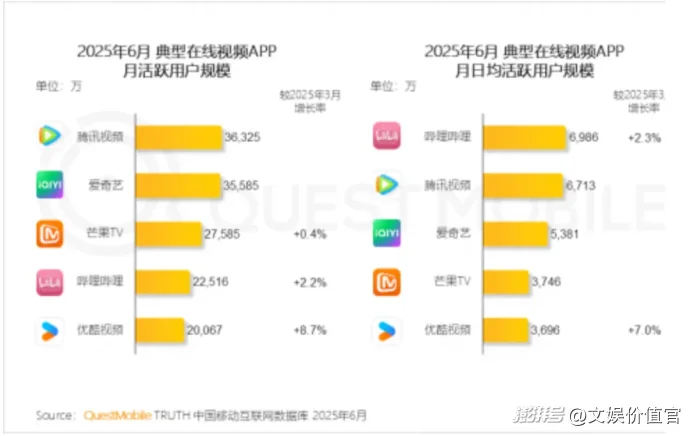伴隨移動(dòng)互聯(lián)網(wǎng)高速增長(zhǎng)的“紅利期”消退,“低垂的果實(shí)”被悉數(shù)摘完,在線視頻、短視頻、在線音樂(lè)等娛樂(lè)應(yīng)用正紛紛撞上“隱形天花板”。QuestMobile發(fā)布《2025中國(guó)移動(dòng)互聯(lián)網(wǎng)半年大報(bào)告》顯示,除優(yōu)酷、嗶哩嗶哩之外,其他在線視頻app的日活用戶規(guī)模都出現(xiàn)了停滯。不僅如此,截至今年一季度,騰訊音樂(lè)在線音樂(lè)月活躍用戶數(shù)已連續(xù)14個(gè)季度同比下降。
