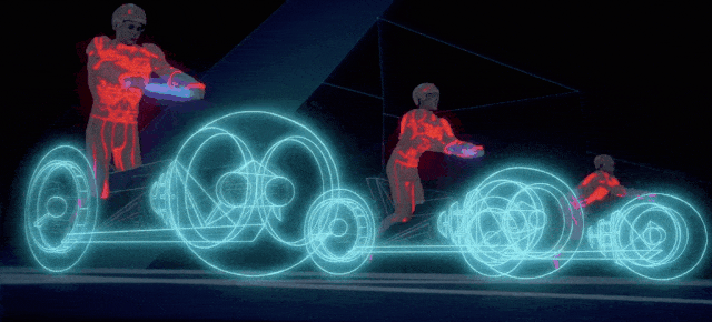 △ 《電子世界爭(zhēng)霸戰(zhàn)》中光輪摩托在身后留下致命光墻
