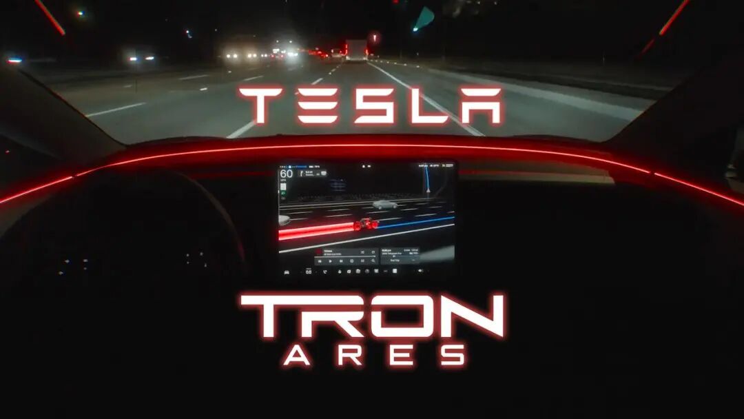 甚至連特斯拉也推出了聯(lián)動(dòng)——在車機(jī)系統(tǒng)內(nèi)增加了“Tron:Ares”模式,車主可以將屏幕上的車輛圖標(biāo)變成一臺(tái)紅色的光輪摩托。