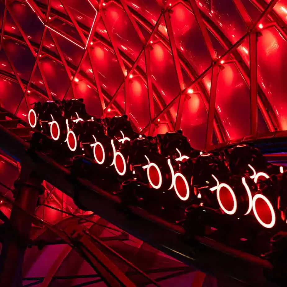 這個(gè)耗資巨大的過(guò)山車項(xiàng)目,讓游客能親身體驗(yàn)騎上光輪摩托、在數(shù)字網(wǎng)格中極速穿梭的快感。