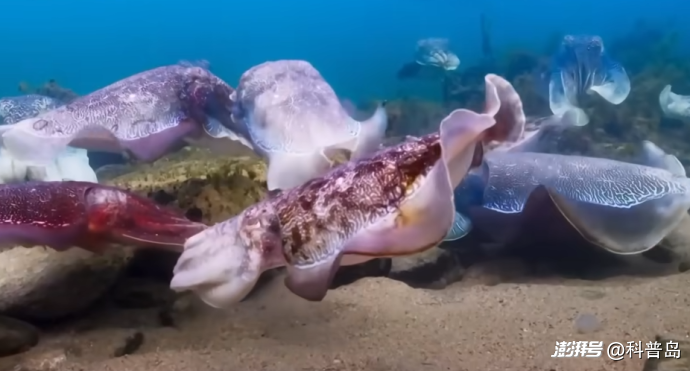 在南澳的斯潘塞灣,每年的5-8月,正值南半球的冬季至早春,此時(shí)淺海的天敵較少,澳洲巨型烏賊(Sepia apama)們就會(huì)舉行一場(chǎng)世界上最盛大的聯(lián)姻party:數(shù)量能夠達(dá)到幾十萬(wàn)只,它們都在為了傳宗接代,尋找心儀的對(duì)象。