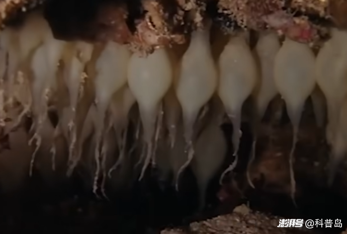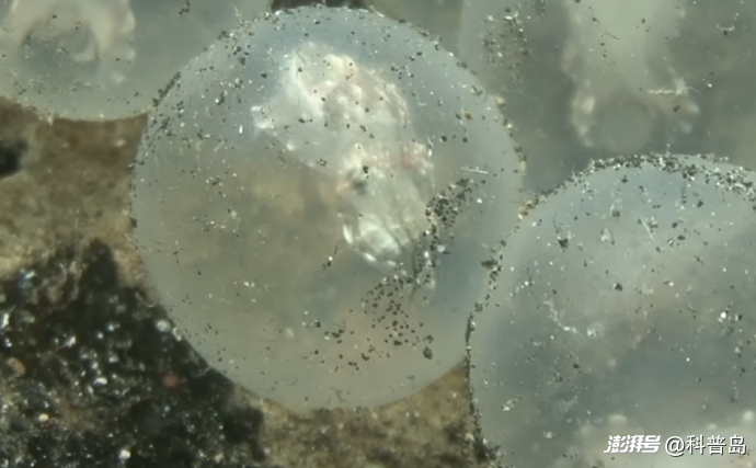 交配過(guò)后,雌性墨魚(yú)會(huì)把卵產(chǎn)在石縫等隱蔽的地方,像鐘乳石一樣懸掛在上面,過(guò)幾個(gè)月,這些卵就會(huì)變透明,還能看見(jiàn)小墨魚(yú)在里面好奇地看著這個(gè)世界。