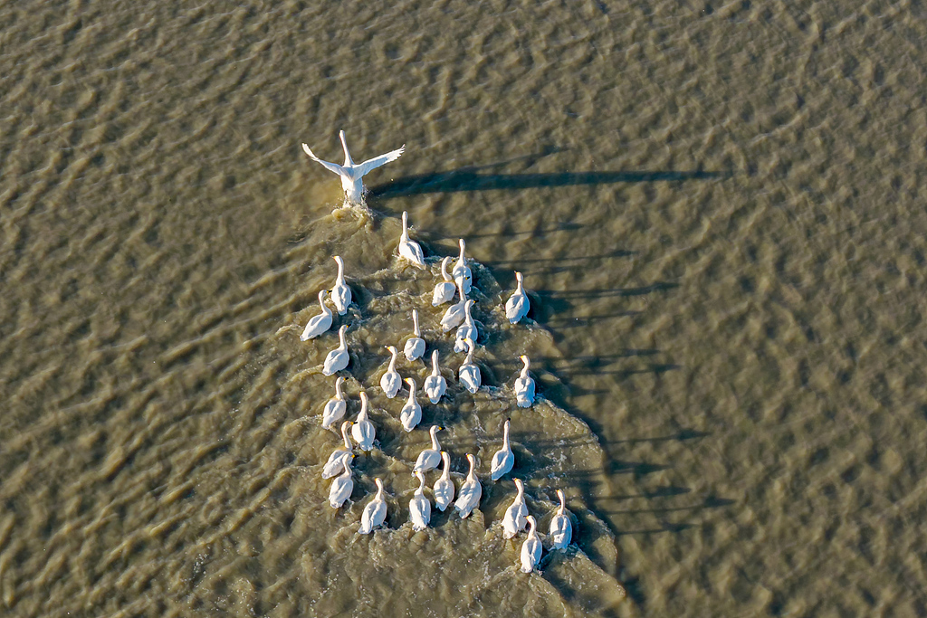 2025年10月24日,黑龍江省大慶市杜爾伯特蒙古族自治縣,即將南遷的國家二級保護動物小天鵝,集結(jié)在龍虎泡覓食補充能量,做好南遷的準備。