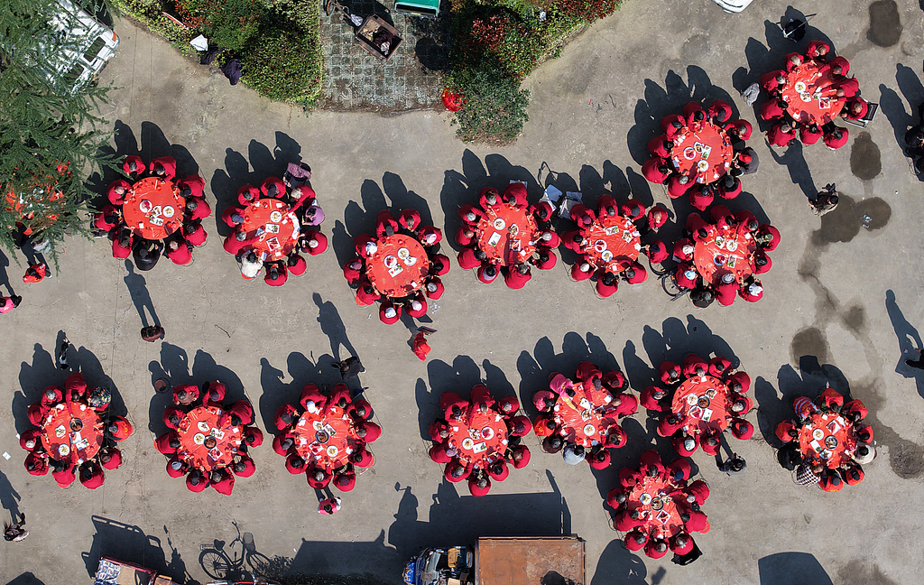 2025年10月23日,安徽阜陽,臨泉縣長官鎮(zhèn)蘊華居委會舉辦第三屆“百叟宴”,老人們歡聚一堂。