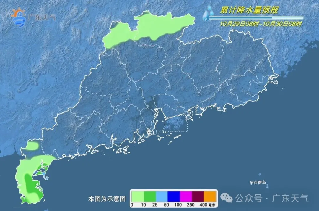 29日,雷州半島南部市縣多云間陰天,有(雷)陣雨,其余市縣多云,局部有小雨。最低氣溫:粵北和肇慶市縣15~18℃,南部沿海市縣20~21℃,其余市縣18~20℃。