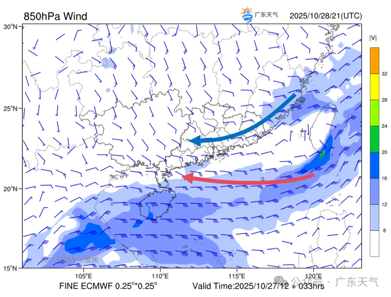 28-30日,我省海面有東北風(fēng)6~7級陣風(fēng)8級,30日白天風(fēng)力逐漸減弱到5級,31日夜間開始粵東海面風(fēng)力重新加大到6~7級陣風(fēng)8級。