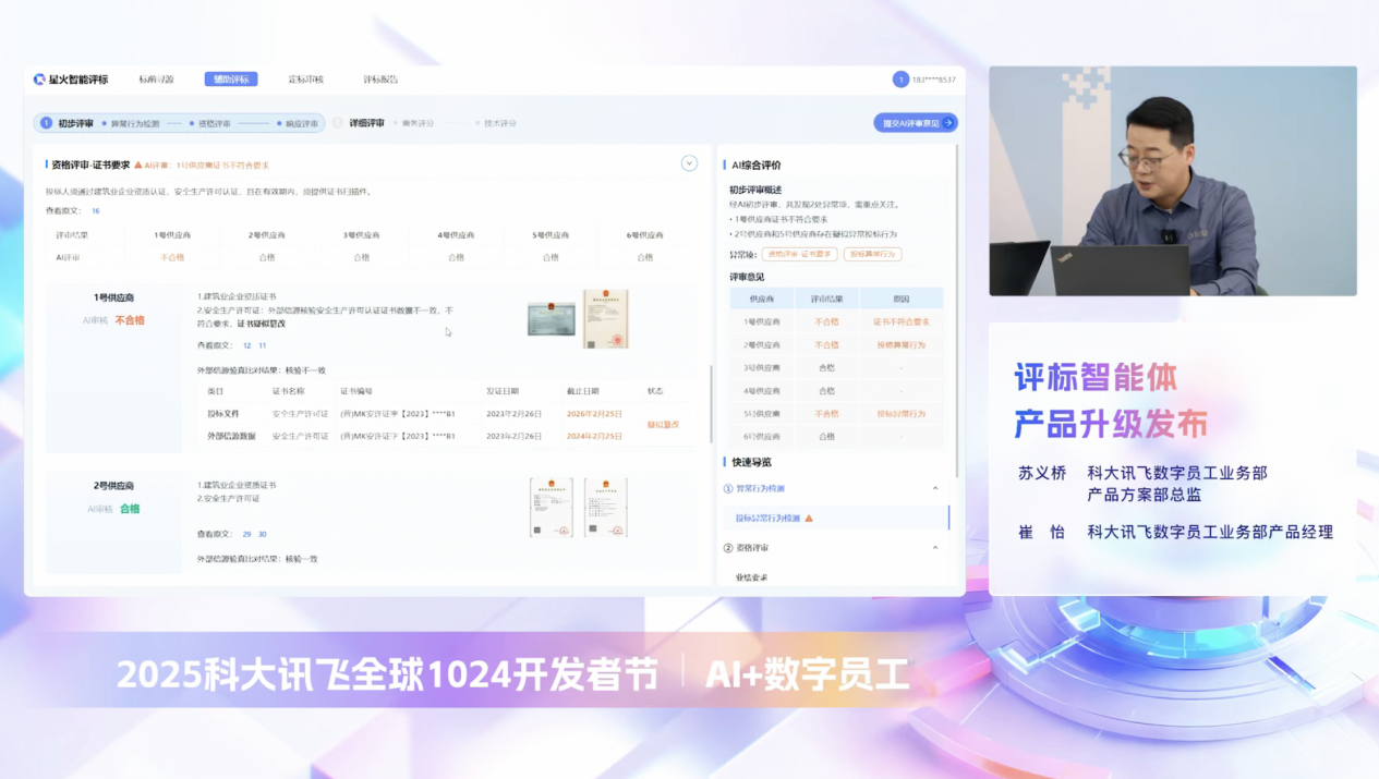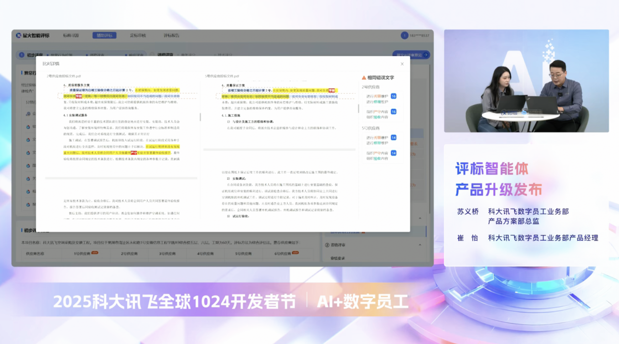 在10月27日的科大訊飛1024開發(fā)者節(jié)線上直播中,一款名為“招采首席官”的AI數(shù)字員工正式亮相。直播演示中,該產(chǎn)品展現(xiàn)出在招采全流程中的智能化能力,現(xiàn)場實(shí)時識破篡改證書,并通過發(fā)現(xiàn)兩家公司投標(biāo)文件中的相同錯別字,成功鎖定圍標(biāo)嫌疑,呈現(xiàn)出AI技術(shù)在政企招采領(lǐng)域的應(yīng)用已進(jìn)入深水區(qū)。